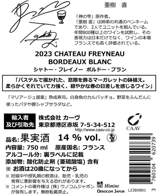 シャトー フレイノー ボルドー ブラン 2023年(神の雫) AOC ボルドー ブラン